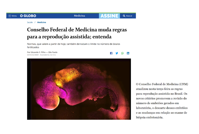 Nosso diretor científico, Dr. Edson Borges Jr. agora é também colunista do “Receita de Médico”, do jornal O Globo. Em seu primeiro artigo para a coluna, o Dr. Edson Borges falou sobre a evolução da Medicina Reprodutiva e algumas tendências desta ciência tão fascinante. Para ler o artigo completo, clique aqui!