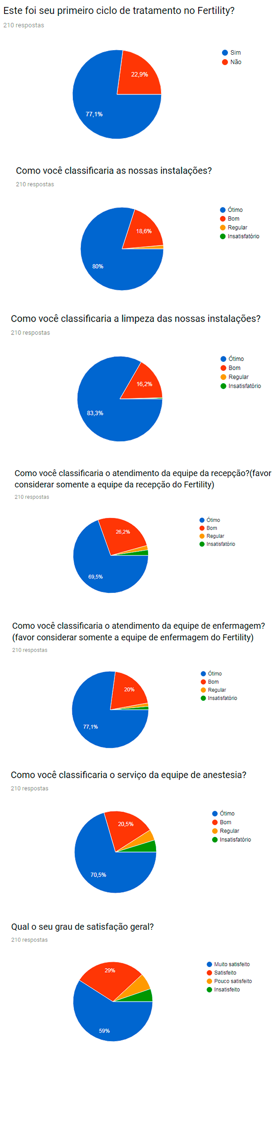 Queremos compartilhar e comemorar com você a nossa recente Pesquisa de Satisfação. Uma importante ferramenta de informação, com a validação das metas diárias x pacientes – público que melhor pode avaliar o Fertility Medical Group. A enquete trouxe dados que reforçam nosso comprometimento em distintas áreas, por exemplo, instalações, limpeza, atendimento, equipes de enfermagem, equipe laboratorial entre outros assuntos. Continue participando. Sua opinião é muito valiosa para nós:
